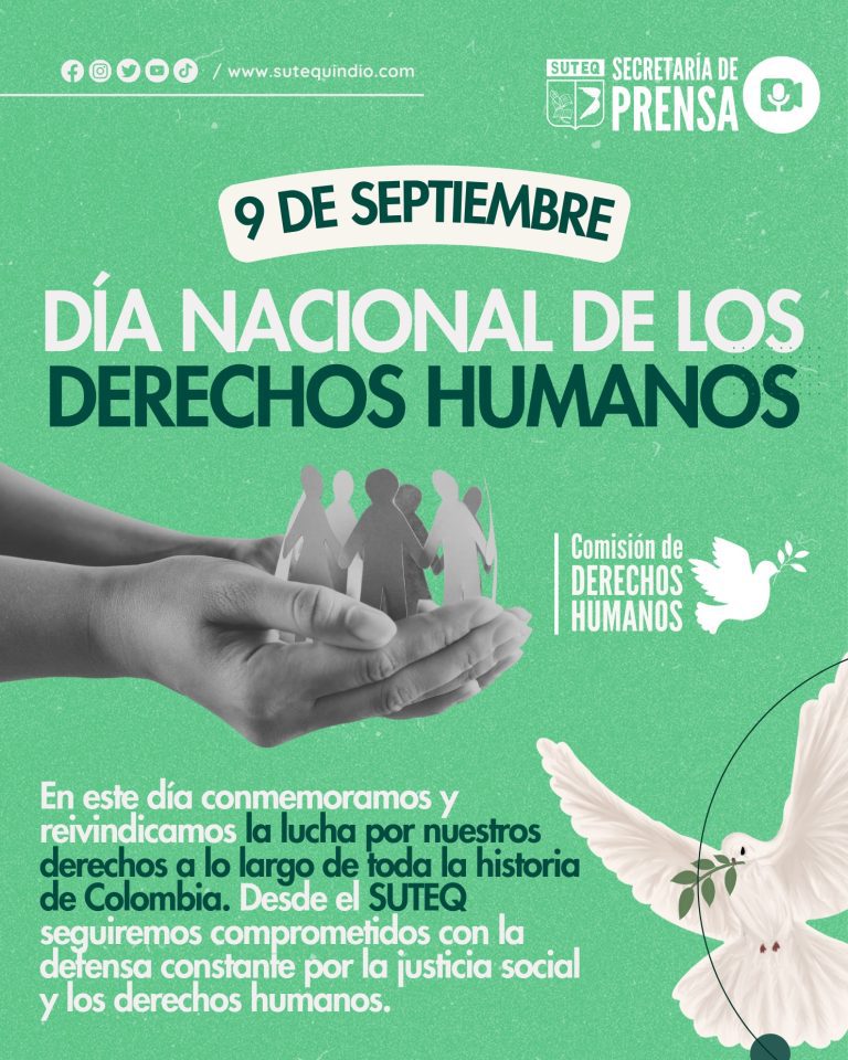 #DerechosHumanos 🕊️🌼 Desde la Comisión de Derechos Humanos y la Secretaría de Prensa del SUTEQ conmemoramos el Día Nacional de los Derechos Humanos, un día para recordar la lucha por nuestros derechos a lo largo de la difícil historia colombiana.